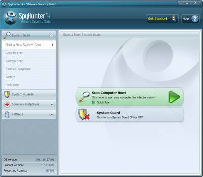 [left] Версия: 4.8.13 Build 3861 Разработчик: Enigma Software Group USA, LLC. Язык интерфейса: Мульти без Русского Таблэтка: Присутствует Системные требования: Microsoft Windows XP (32-bit) Home/Professional/Tablet PC/Media Center (32-bit) with Service Pack 2 or later Microsoft Windows Vista (32-bit and 64-bit) Starter/Home Basic/Home Premium/Business/Ultimate Microsoft Windows 7 (32-bit and 64-bit) Starter/Home Basic/Home Premium/Professional/Ultimate SpyHunter - программа, которая очищает систему от программ-шпионов, кейлоггеров, резидентных вирусов, при необходимости удаляет cookies, записи в реестре, оставленные шпионскими программами. Проверяет запущенные процессы, ключи реестра, элементы ActiveX. Имеет весьма дружественный интерфейс, благодаря которому, предельно проста в работе, а внушительная база сигнатур не позволит ни одному шпиону остаться незамеченным. SpyHunter использует специально разработанные методы, позволяющие удалять spyware программы, которые не могут быть удалены другими анти-spyware программами. Функция Rollback Capabilities позволяет посмотреть историю удаленных spyware и вернуть назад ошибочно перемещенные в карантин. В дополнение к сканированию и удалению шпионского и рекламного ПО, SpyHunter также имеет возможность быстрого генерирования логов и интерфейс с прямой поддержкой связи с отделом борьбы с новыми шпионскими угрозами. Предотвращает кражу номеров кредитных карт. Характеристики: Удаляет Шпионы, Рекламу, Кейлогеры, Cookies и Панели инструментов. Удаляет шпионские регистрационные ключи, программы всплывающих окон и другие вредоносные программы. Удаляет вредоносные программы, замедляющие работу компьютера. Расширенная база данных с сигнатурами угроз шпионов и рекламных ПО. Бесплатные обновления на новые шпионские угрозы. Быстрейший сканер из представленных на рынке. Возможность отмены удаления шпиона. Простой в использовании интерфейс. Не конфликтует с основными продуктами безопасности [/left]
